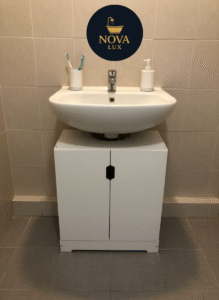 مساحة تخزين ذكية: تساعدك على تنظيم مستلزماتك اليومية (مناشف، مواد التنظيف، أدوات العناية).